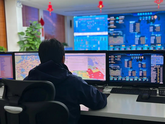 在調度中心的大屏上,供水管網分布位置、各水廠的監控數據以及管網供水壓力數據等一目了然。根據這些數據,調度人員科學調度各片區的水量,確保均衡供水,保障春節期間水壓穩、水量足。同時,生產運行人員加強廠內設施設備的巡檢頻次,保證供排水設施設備在低溫天氣下正常運行,保障供排水穩定。