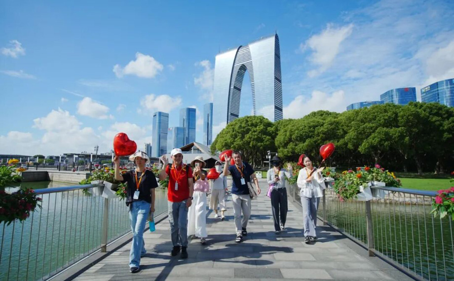 清晨至日暮,隨處可見結伴而行的游客與市民,他們手持手機,沿著波光粼粼的湖岸線,開啟了一場別開生面的“打卡尋愛”之旅。從金雞驛01的起點出發,現代地標東方之門是必拍的背景板;信步至蘇州中心商場,新開的特色首店成為旅程中的驚喜插曲;在充滿藝術感的《圓融》雕塑前,人們尋找著最佳光影角度;而李公堤的中法愛墻前,更是人頭攢動,不同語言的“我愛你”成為無數情侶定格深情瞬間的浪漫見證。