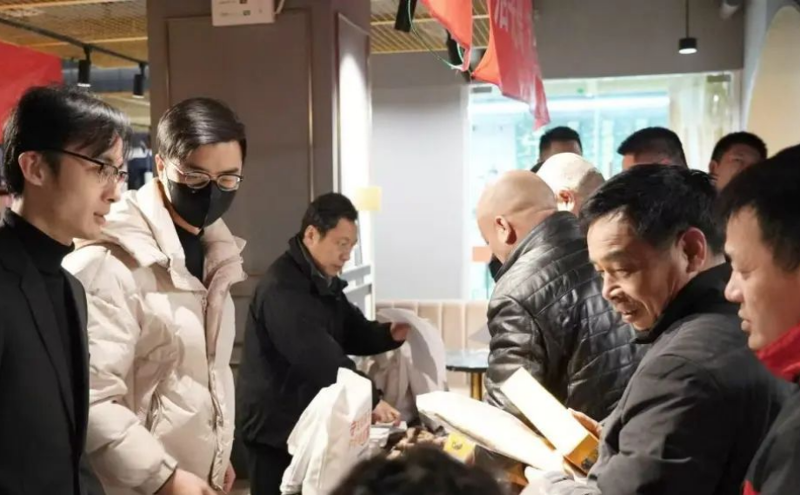 除了法律知識的普及、政策服務的宣傳,活動現場還充滿了濃濃的節日氛圍。商務區黨工委為參與活動的集宿區員工與建筑工人送上熱氣騰騰的湯圓,并將法治元素、黨建元素融入元宵祝福中。湯圓雖小,卻承載著滿滿的溫暖與關懷,讓這個元宵節變得格外暖心。此外,商務區兩新工委準備了傳統冰糖葫蘆,“一串紅果送甜蜜,情暖工友慶元宵”,讓工人朋友在節日里感受到甜蜜與溫暖。