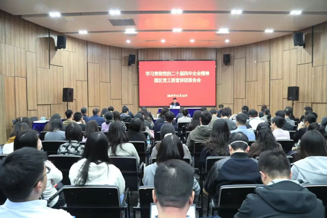 宣講會上,潘瑜圍繞習近平總書記在黨的二十屆四中全會上的重要講話和全會《建議》,從深刻認識黨的二十屆四中全會的重大意義和深遠影響,準確把握“十五五”時期在基本實現社會主義現代化進程中的重要地位,并結合園區(qū)科技創(chuàng)新工作實際,對全會精神作了全面宣講和系統(tǒng)闡釋。