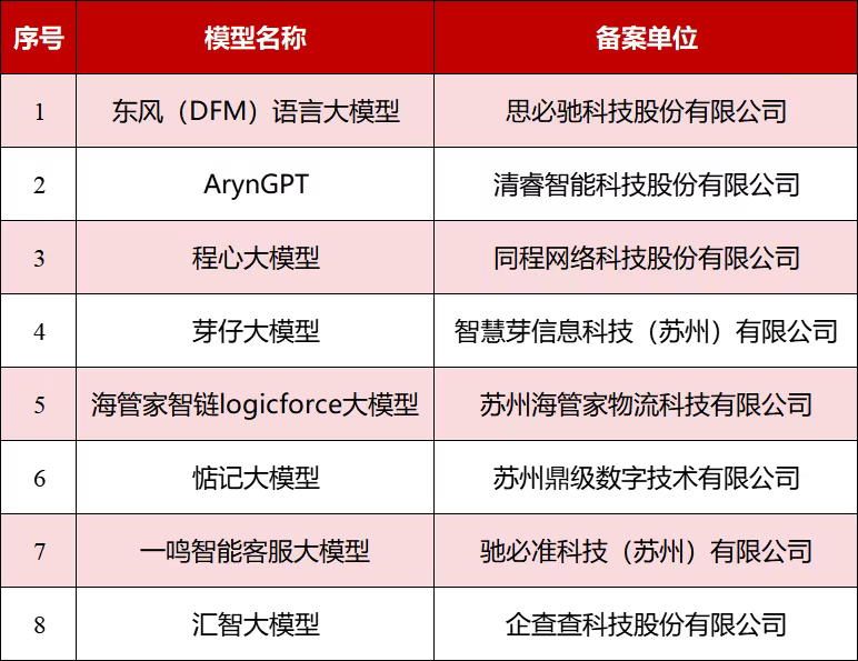 12月2日,江蘇網信發布新一批生成式人工智能服務已備案信息,其中,蘇州工業園區企查查科技股份有限公司——匯智大模型成功通過備案。
