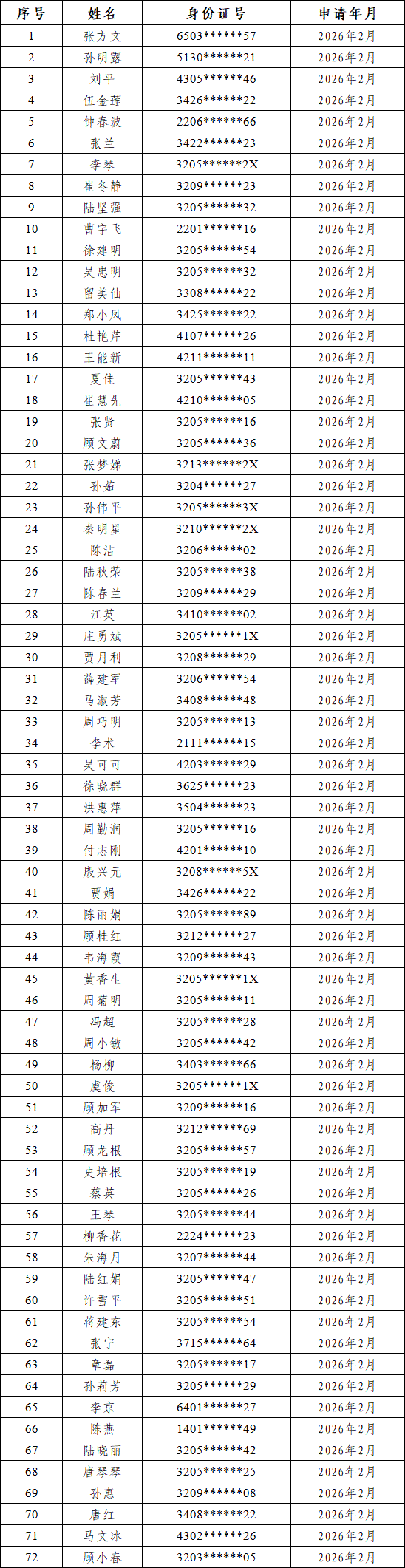 2026年2月靈活就業人員社保補貼新增符合人員公示名單