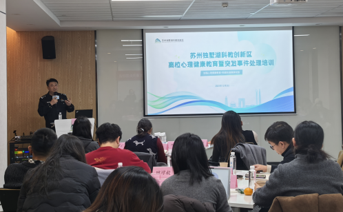 12月3日,蘇州獨墅湖科教創新區高校心理健康教育及突發事件處理培訓在青創港順利舉辦。40名來自區內各高校的心理健康領域教師齊聚現場,夯實專業技能、交流實踐經驗。