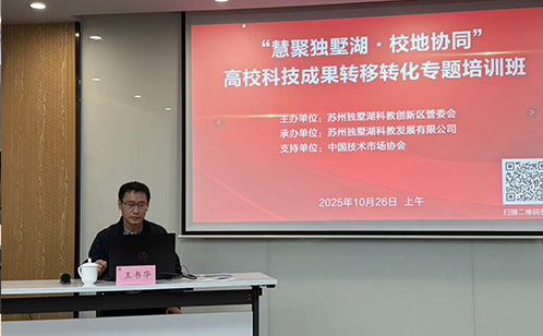 為提升園區高校科技成果轉移轉化效率,強化科技服務支撐效能,10月26日至28日,由蘇州獨墅湖科教創新區管委會指導,中國技術市場協會支持,蘇州獨墅湖科教發展有限公司承辦的“慧聚獨墅湖·校地協同”高校科技成果轉移轉化專題培訓班順利舉辦。來自科教創新區內相關高校及科研院所的67位科技項目負責人參加了此次培訓。