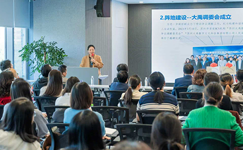 活動特邀省級金牌調解組織蘇州大禹數字文化科技集團有限公司勞動爭議調解委員會副主任浦麗莎作“優(yōu)秀調解組織經驗推介”,結合實踐講述調解組織在建設運作及高效化解勞動爭議方面的有效做法。