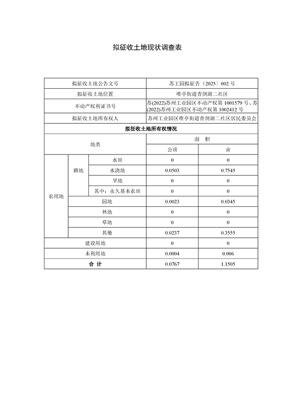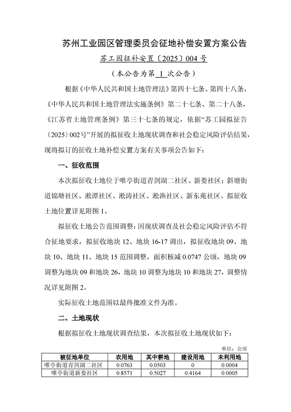 蘇州工業(yè)園區(qū)2025年度第4批次城市建設(shè)用地--蘇州工業(yè)園區(qū)管理委員會(huì)征地補(bǔ)償安置方案公告(蘇工園征補(bǔ)安置〔2025〕004號(hào))