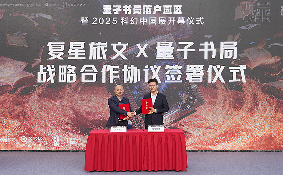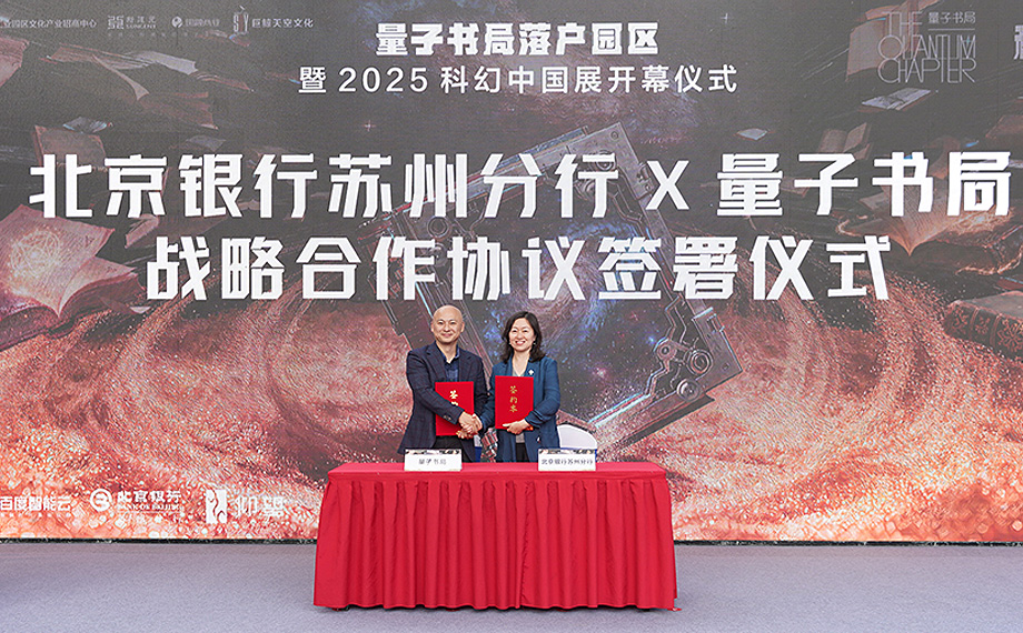 活動(dòng)現(xiàn)場(chǎng),王晉康、劉慈欣、蘇學(xué)軍、李易謙等作家受聘量子書局科學(xué)領(lǐng)閱官。量子書局與復(fù)星旅文、北京銀行簽署戰(zhàn)略合作協(xié)議,將合力推動(dòng)金融與文化的深度融合,就高品質(zhì)研學(xué)、青少年科幻主題活動(dòng)、科幻主題線下場(chǎng)景體驗(yàn)等開展深入合作。