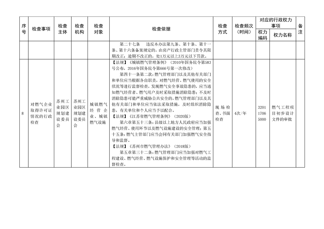 蘇州工業(yè)園區(qū)規(guī)劃建設(shè)委員會(huì)行政檢查計(jì)劃清單(2025年度)
