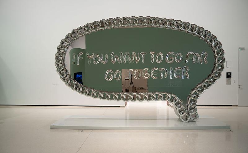展示ホールの2階には、幅約6メートル、長(zhǎng)さ約4メートルの巨大なインスタレーション作品『IF YOU WANT TO GO FAR, GO TOGETHER』が大注目を集めた。同展覧會(huì)のハイライトとして、この作品はアーティストの徐震氏によって心を込めて制作された。このインスタレーションは、アートの言語(yǔ)を用いて中國(guó)とシンガポールの協(xié)力の成果を生き生きと解釈すると同時(shí)に、「未來(lái)に向けて、中國(guó)とシンガポールは引き続き手を攜え、肩を並べていく」という展覧會(huì)のビジョンも明確に示している。
