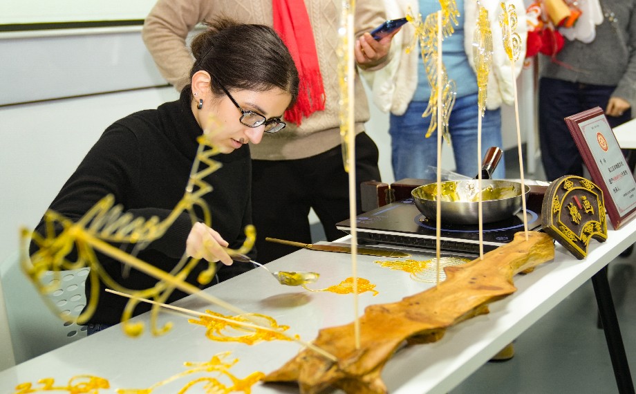この活動では、蘇州市青年連合會委員であり、飴細工技術の第四世代継承者である李瑤氏を特別に招き、外國人學生たちに飴細工の歴史的由來、文化的內包、そして工蕓技術について解説した。継承者の指導のもと、外國人學生たちは自ら駿馬や提燈など、吉祥を意味する新春モチーフの飴細工を制作した。これは、無形文化遺産技術への初めての體験であると同時に、中國の春節の雰囲気を生き生きと感じ取る機會となった。