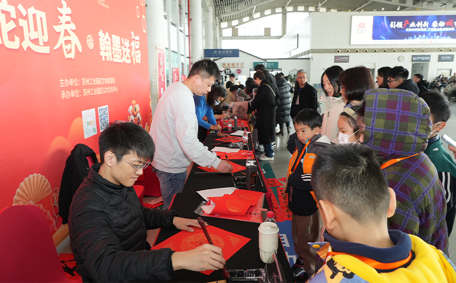 春節臨近,年味漸濃。今年是中國春節申遺成功后的首個“非遺版”春節,為營造歡樂、祥和、喜慶的節日氛圍,1月22日,由蘇州工業園區公共文化中心舉辦的“非遺賀新春 潮趣過大年”春風行動走進蘇州園區站,將滿滿的關懷與濃濃的年味送到群眾身邊。活動現場,紅紙鋪展,墨香四溢。書法家們揮毫潑墨、筆走龍蛇,一副副蘊含深情祝福的春聯躍然紙上。他們以筆傳情,以墨達意,一筆一劃都凝聚著對傳統文化的熱愛與傳承。乘客們紛紛圍攏過來,欣賞書法大師們的精湛技藝,并爭相領取春聯,希望將祝福帶回家中,為新的一年增添喜慶與祥和。乘客陸女士說:“活動的大紅色展板很醒目,很有年味,我立刻被吸引過來。我是打算回鎮江的... [詳細]