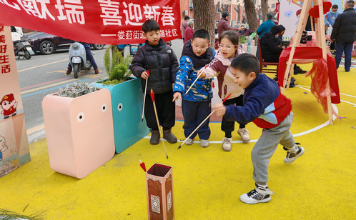 活動(dòng)現(xiàn)場人頭攢動(dòng),處處洋溢著濃厚的節(jié)日氛圍。美食攤位上,海棠糕以其獨(dú)特的口感和制作工藝吸引了眾多居民駐足品嘗,非遺美食冰糖葫蘆更是讓人們感受到了傳統(tǒng)文化的魅力;迎新游戲區(qū)同樣熱鬧非凡,滾滾樂、投壺等游戲吸引了眾多居民熱情參與,大家齊心協(xié)力,歡笑聲、呼喊聲交織在一起;磨刀、縫補(bǔ)、配鑰匙、修鞋等傳統(tǒng)手藝的攤位前排起了長隊(duì),大家一邊等待,一邊嘮著家常,盡情享受著“家門口”的便利,感受著鄰里間的溫暖;新年拍照打卡點(diǎn)更是成為了居民記錄美好瞬間、留下珍貴回憶的地方,伴隨著相機(jī)快門的清脆聲響,新一年的福氣與喜悅被定格。