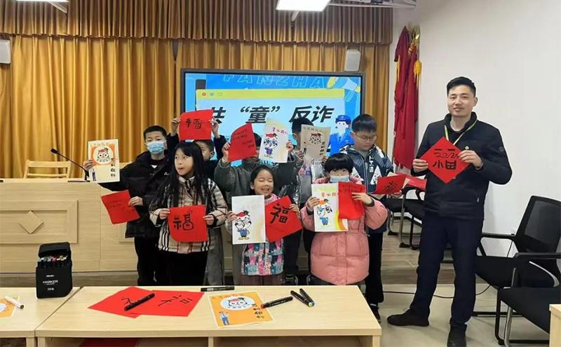 與此同時,文萃路社區金融志愿服務站也開展了“我是小小金融啄木鳥”反詐講座。講座現場,拓印傳福、棉花糖制作等趣味活動吸引了眾多家長和小朋友的參與。此外,書寫反詐防非春聯、金融反詐防非知識有獎問答等環節更是將現場氣氛推向了高潮。通過生動的案例講解和互動問答,工作人員向家長們和小朋友們普及了金融知識,并提醒他們年底要警惕詐騙陷阱,確保自身財產安全。