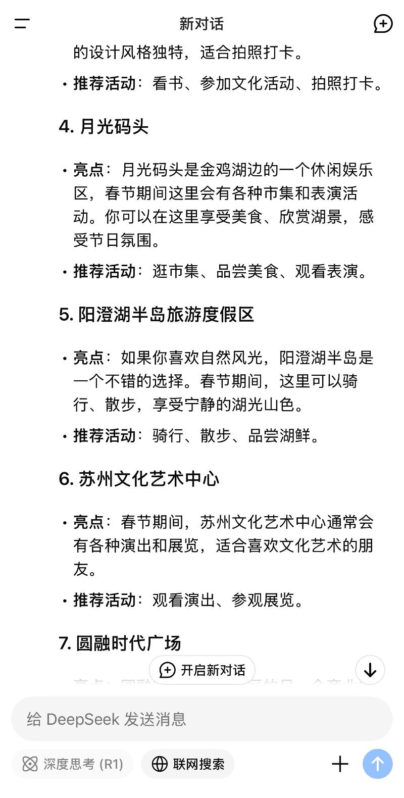 DeepSeek可真是太懂園區(qū)啦!作為時尚潮流的現(xiàn)代化城市,園區(qū)端出“游住購行”一站式新春盛宴,各大商圈聯(lián)動景點,打響“新春鬧市集”品牌,營造充滿年味與文化韻味的歡聚體驗,讓市民游客感受非一般的“酥”年。下面跟著DeepSeek一起玩轉(zhuǎn)“年味版”園區(qū)吧!