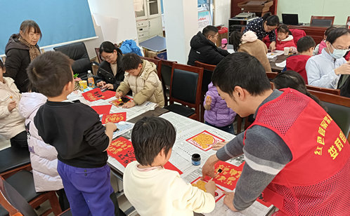 “拓印起源于先秦時期,是中國古代最早出現的一種特殊的印刷技術,具有深厚的歷史底蘊和獨特的藝術魅力……”“紅管”志愿者首先為大家簡單介紹了拓印的歷史起源、文化內涵和制作工藝,通過生動的講解和示范,在場居民無不表現出濃厚的興趣。隨后,在專業(yè)老師的指導下,大家開始動手體驗。首先將自己喜歡的模板置于紅色宣紙上,再小心翼翼地用海綿刷蘸取墨汁,均勻且輕柔地按壓拓印,使圖案或文字清晰地印在紙上,待將模板揭下,一張張墨香四溢、滿載著新年祝愿的拓印作品就誕生了。此次非遺拓印活動不僅讓居民近距離感受到傳統藝術文化的魅力,更促進了鄰里之間的情感交流。