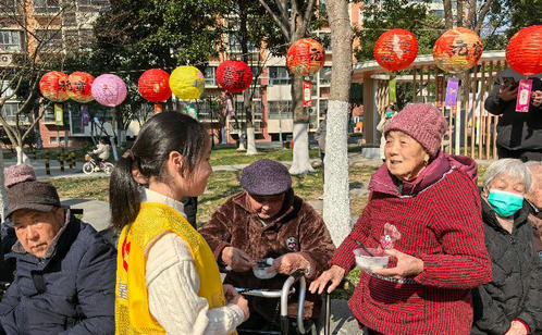在美食兌獎攤位前,大家排隊領(lǐng)取不同的美食小吃,熱氣騰騰的湯圓、奶香撲鼻的爆米花、酸甜可口的冰糖葫蘆都散發(fā)著誘人的香氣,團員志愿者一邊煮著湯圓,一邊和居民聊天。芝麻餡的香甜軟糯,花生餡的醇厚濃郁,居民們品嘗著不同口味的湯圓,“星寶”志愿者們將湯圓送到居民手中,大家吃著甜甜的湯圓,感受著團圓的溫暖。