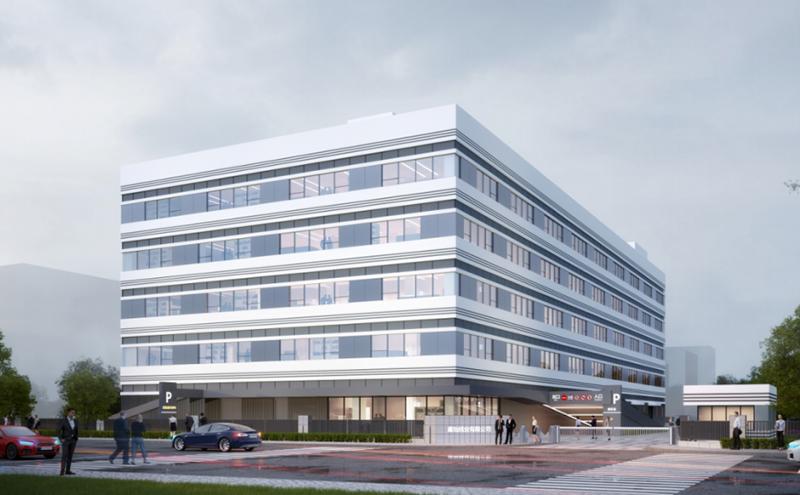 新項目計劃新建6棟5層工業廠房和若干輔房,總建筑面積89954.14平方米,綠地面積5500平方米,容積率由0.56提升至2.46。新園區以現代化高品質為標準,采用淺色石材顆粒涂料搭配玻璃幕墻,與周邊地塊形成統一的色彩效果。