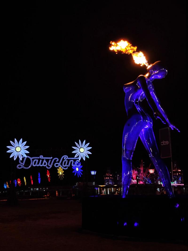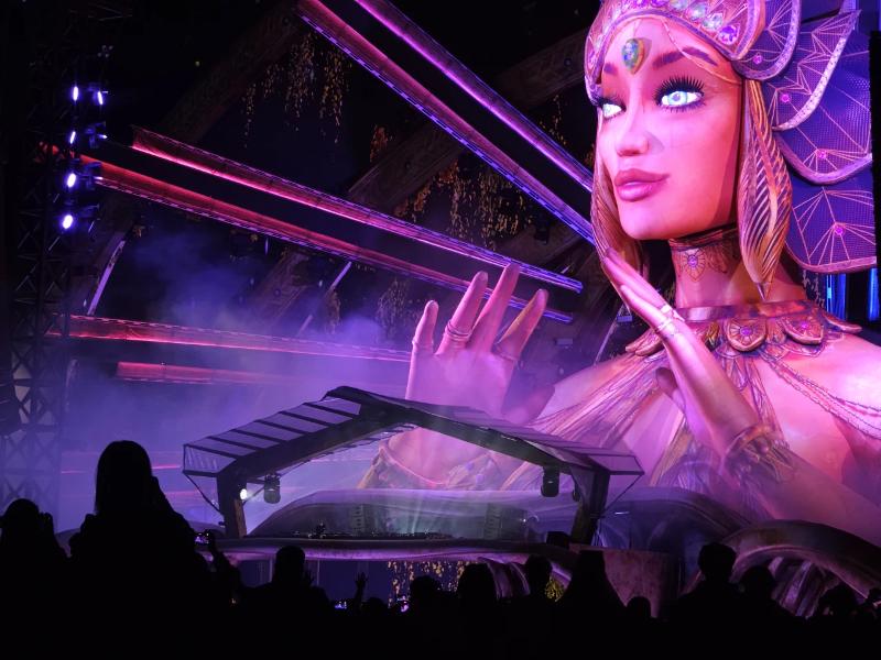 全球頂尖團(tuán)隊設(shè)計的日升女神kineticFIELD主舞臺,通過精密機(jī)械實現(xiàn)女神雙臂隨樂律動,配合激光、火焰與同步煙花,首日便誕生百萬級傳播的“女神”名場面。circuitGROUNDS舞臺以360度巨型LED墻構(gòu)建科技矩陣,stereoBLOOM舞臺以前衛(wèi)工業(yè)風(fēng)見證多位國際大咖中國首秀,boomboxARTCAR移動舞臺則以“巨型音箱”造型引爆隨行狂歡。