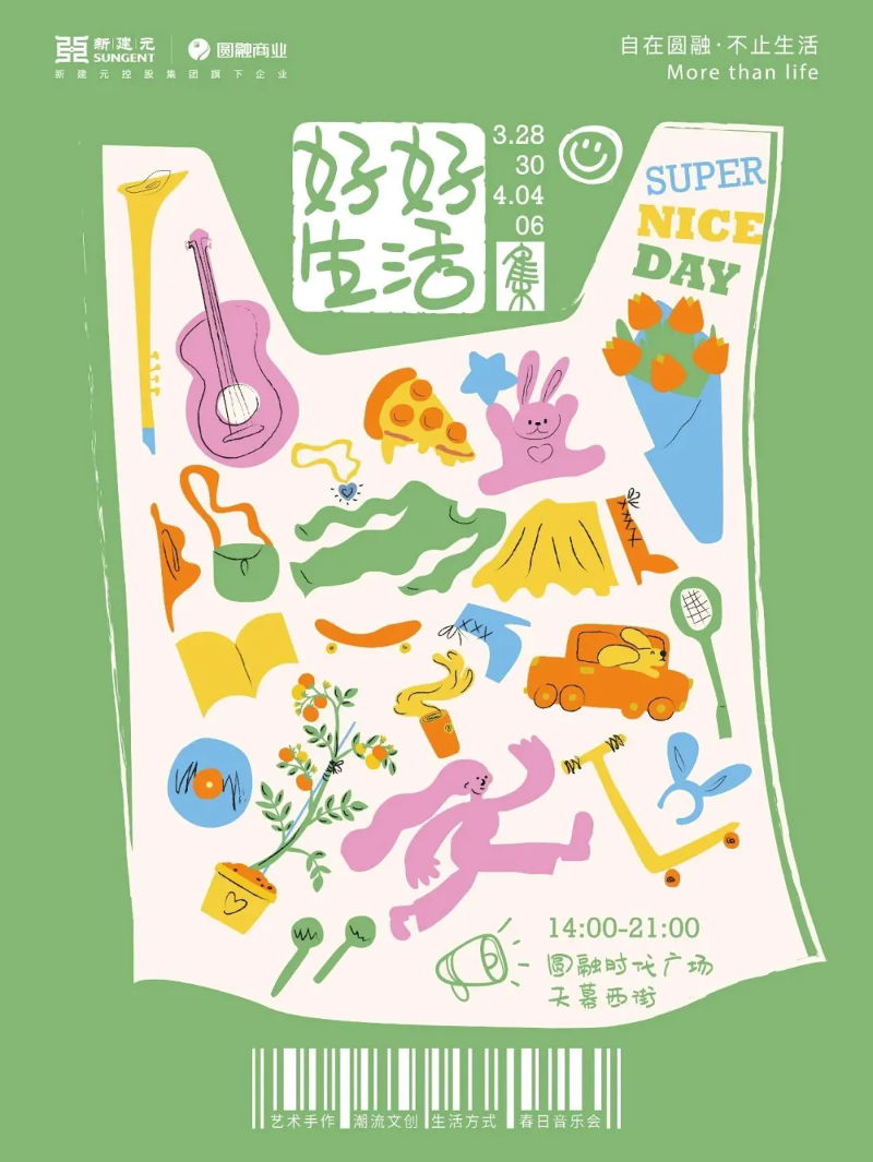 在圓融時代廣場天幕西街,好好生活集匯聚非遺手作、春日小吃、趣味文創(chuàng)等,還有分時段上演的舞臺演出,用動感節(jié)奏傳遞滿滿的熱情。