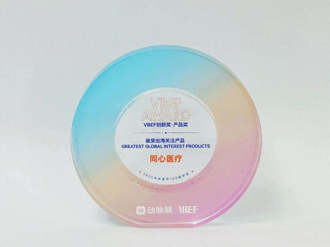 近日,動脈網2025未來醫(yī)療醫(yī)藥100強展會(VBEF)在蘇州國際博覽中心舉行。同心醫(yī)療自主研發(fā)的新一代全磁懸浮人工心臟,憑借在產品創(chuàng)新和海外臨床試驗進展方面的卓越表現(xiàn),榮膺“未來醫(yī)療100強創(chuàng)新獎——最具出海關注產品”。