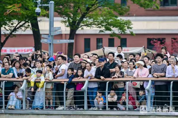 金雞湖上,一艘艘龍舟上演百龍爭渡,龍舟隊(duì)員們齊心協(xié)力、揮槳如飛,向著終點(diǎn)全力沖刺。現(xiàn)場,既有專業(yè)隊(duì)伍的速度與激情,也有國際友人解鎖“龍舟新姿勢”,彰顯著“龍舟精神”的多元魅力。如今,金雞湖端午龍舟賽已經(jīng)成為蘇州的新民俗,吸引了眾多的市民和游客前來觀賽,為自己喜愛的隊(duì)伍加油助威。