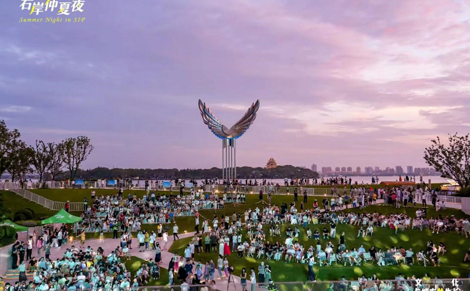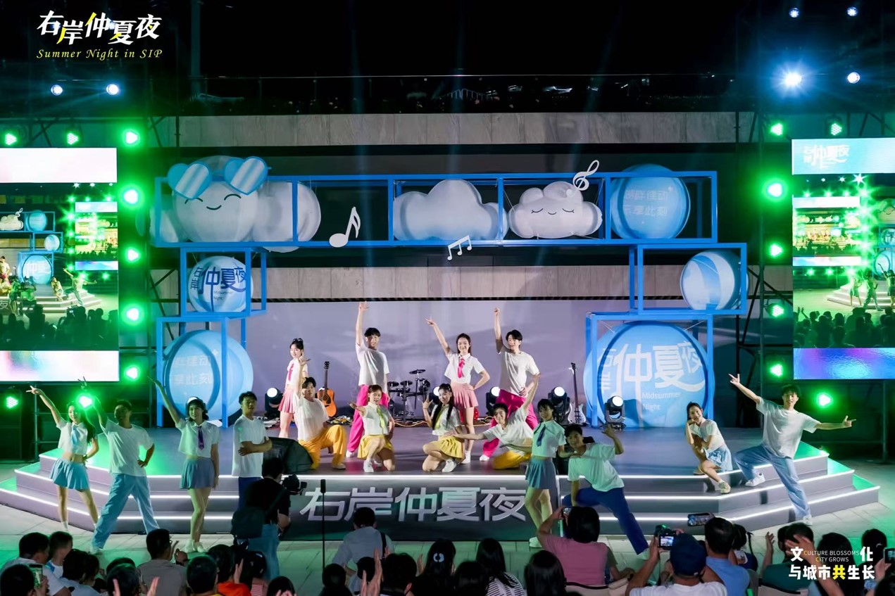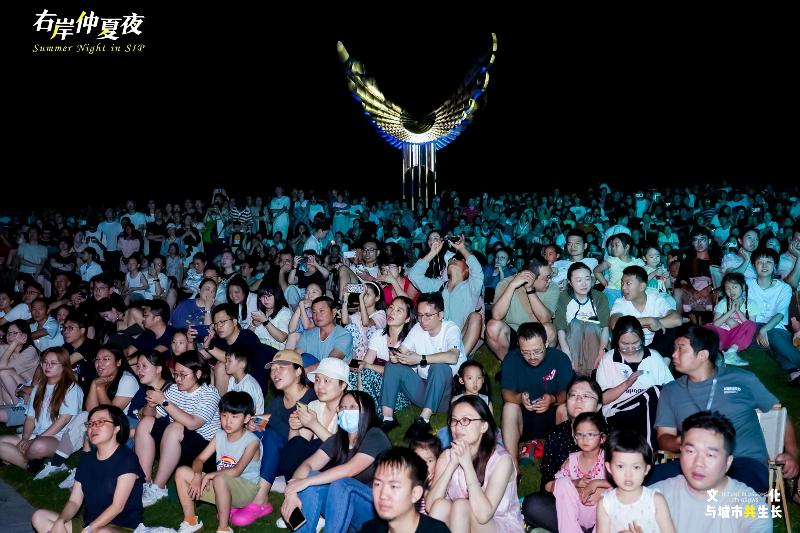 “右岸仲夏夜”推出二期,已成長為園區嶄新的文化IP,不僅為市民奉上豐盛的精神盛宴,更成為展示區域文旅魅力的閃亮名片?!拔規Ш⒆觼磉@邊散步納涼,沒想到碰上這么精彩的演出?!笔忻褛w女士說道,“現在的園區既有煙火氣,又充滿藝術范兒,周末遛娃、全家放松再合適不過?!薄叭?、全齡、全域、全時”的理念,讓藝術融入湖畔晚風,成為群眾夏夜消暑納涼的好去處。