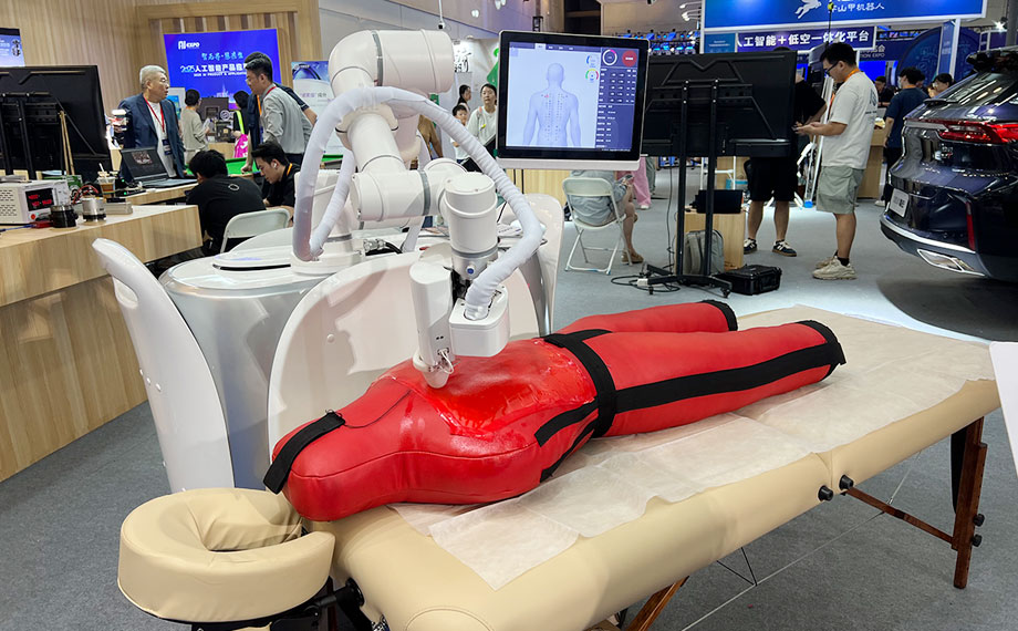 安韋澤是新加坡科技研究局的首個(gè)海外分支機(jī)構(gòu)——新科研引入園區(qū)的一家科技企業(yè),此次展會(huì)帶來(lái)按摩機(jī)器人EMMA,將千年中醫(yī)經(jīng)絡(luò)理論與前沿機(jī)器人技術(shù)相融合,重新書(shū)寫(xiě)“推拿”技藝的時(shí)代傳承。安韋澤項(xiàng)目工程師陳雪介紹,企業(yè)在園區(qū)落地了研發(fā)和生產(chǎn),相關(guān)產(chǎn)品在中醫(yī)診所、康復(fù)機(jī)構(gòu)已有應(yīng)用,目前正申請(qǐng)國(guó)家醫(yī)療器械注冊(cè)流程,未來(lái)將讓優(yōu)質(zhì)康復(fù)資源惠及更多人群。