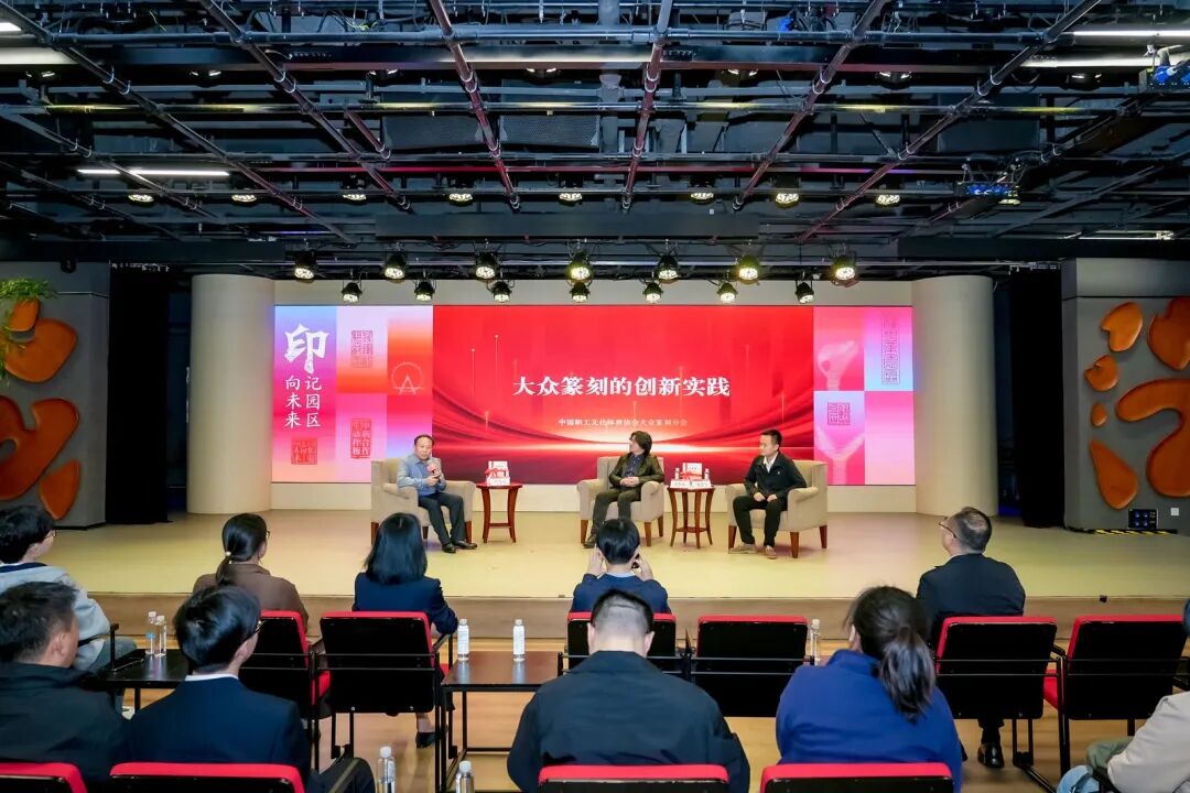 活動(dòng)當(dāng)天還舉辦《大眾篆刻十八講》讀書(shū)分享會(huì),通過(guò)專(zhuān)業(yè)講解與互動(dòng)交流,引導(dǎo)觀眾深入理解篆刻藝術(shù)的內(nèi)涵與魅力。北京歌華傳媒集團(tuán)藝術(shù)總監(jiān)李丹陽(yáng)表示,展覽實(shí)現(xiàn)了地域文化和篆刻藝術(shù)的深度融合,展覽作品大量使用新材料作為印材,靈活運(yùn)用現(xiàn)代科技手段創(chuàng)作,價(jià)格親民、材質(zhì)環(huán)保,有效促進(jìn)了篆刻藝術(shù)的傳播與發(fā)展。