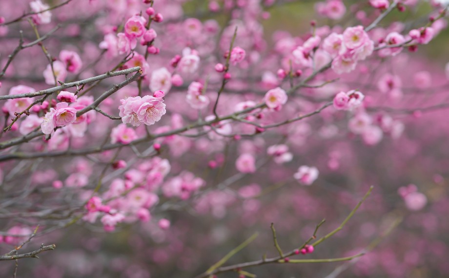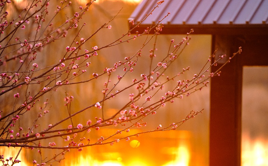 梅,素有“五福花”之雅稱,五片花瓣對應“福祿壽喜財”,每一縷梅香里都裹挾著歲月的美好期許。花瓣舒展,嫩黃花蕊點綴其間,柔光拂過,光影流轉,風動枝搖,滿樹爛漫,便是初春最溫柔的景致。