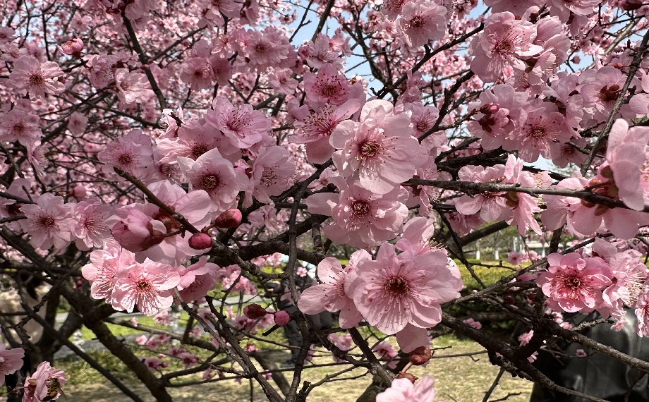若偏愛梅與湖光的相映的雅致,便去陽澄湖畔的蓮池湖公園與仙櫻湖公園。粉梅如霞、紅梅似火、白梅勝雪,各色梅朵層層疊疊綴滿枝頭,與半島的湖光交相輝映,分外靈動。梅樹沿湖蜿蜒,宛若粉霞綢緞纏繞湖畔。風攜梅香掠過湖面,漾開溫柔漣漪,選一株心儀的梅樹駐足合影,將這份湖畔初春的限定浪漫永久定格。