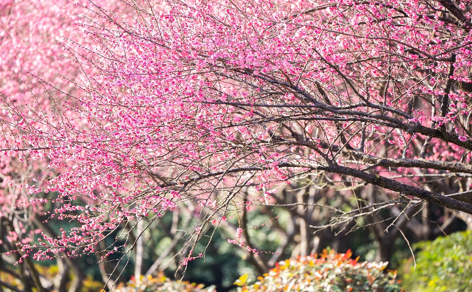園區(qū)的城市公園,是市民家門口的賞梅好去處,白塘公園、東沙湖公園便是其中代表,下樓就能與梅香撞個滿懷。梅開盛時,遠觀粉梅如霞蔚滿天,花骨朵綴于墨枝,漫步其間,梅香縈繞,一步一景皆含詩情。