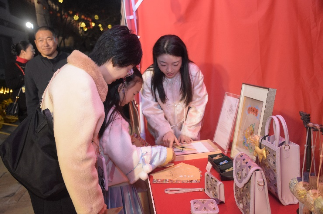 在仁和織繡的攤位前,來自北京的沈女士正帶著女兒一起體驗。沈女士的女兒在學習京劇,特別喜歡傳統文化和非遺。“我們之前在博物館見過緙絲,但不了解具體工藝。現場準備了緙絲小教具,我們可以親自動手體驗,看著一根根絲線最終形成畫面,特別有成就感。”對于緙絲體驗,沈女士頻頻點贊。