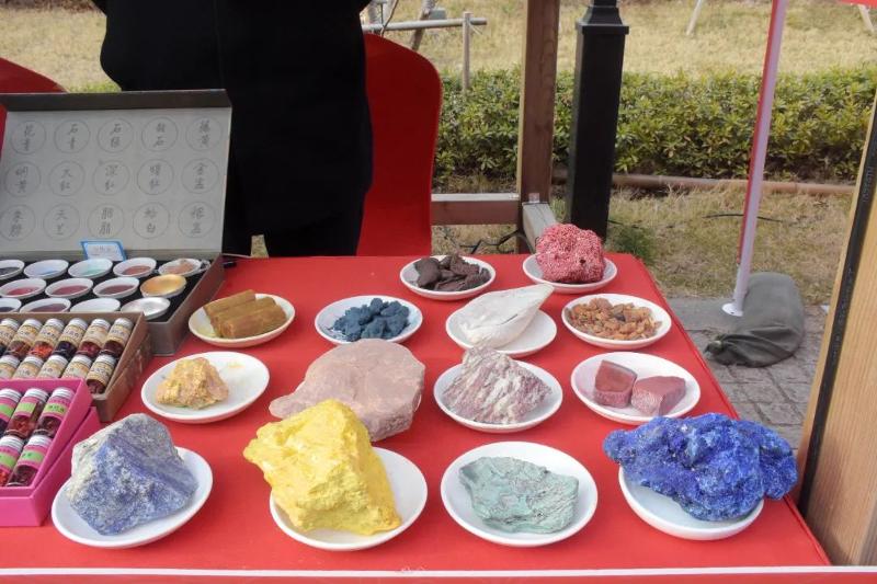 “這是藍(lán)銅礦,《千里江山圖》的青綠就是源自這種礦石。這是青金石、朱砂、瑪瑙、貝殼、藤黃、珊瑚、胭脂蟲……有些是礦物原料,有些是動(dòng)物原料,蓼藍(lán)草等則是植物原料。”在“非遺賀新春——古城過大年”全國主會(huì)場活動(dòng)暨蘇州古城過大年系列活動(dòng)的展示現(xiàn)場,姜思序堂國畫顏料制作技藝非遺代表性傳承人張佰林正熱情地向圍觀的市民游客介紹著各色顏料的原材料。