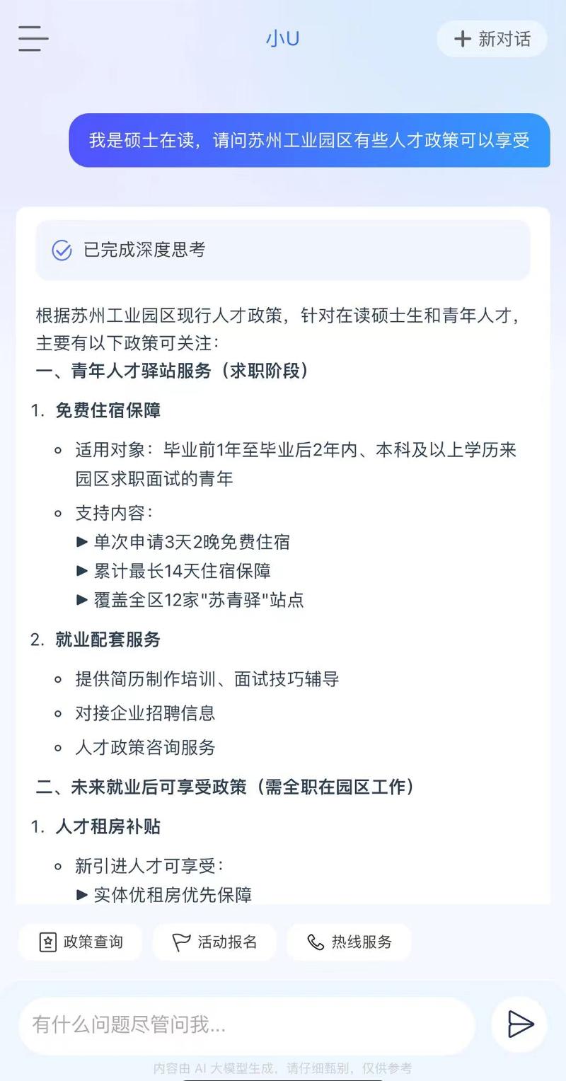 聽說了嗎?蘇州工業園區在“SIP才無憂”小程序里把DeepSeek安排上了,AI賦能人才服務,小程序就像哆啦A夢的口袋,主打一個有求必應,貼心到離譜,政策無憂,創業無憂,生活無憂,活動無憂。