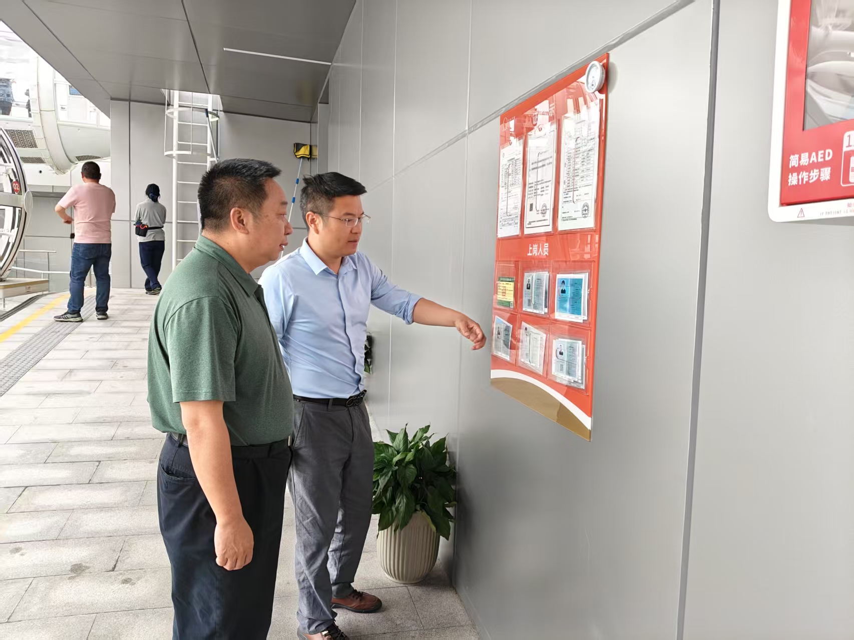 隨著“五一”假期的臨近,為切實(shí)保障特種設(shè)備安全運(yùn)行,園區(qū)市場(chǎng)監(jiān)管局高度重視,對(duì)金雞湖摩天輪、國(guó)際博覽中心等重點(diǎn)場(chǎng)所開(kāi)展節(jié)前安全督導(dǎo)工作?,F(xiàn)場(chǎng)了解金雞湖摩天輪開(kāi)業(yè)一個(gè)多月的設(shè)備運(yùn)行狀況、人流量、人員值班值守情況,提出完善乘客須知、作業(yè)人員公示板等信息。結(jié)合國(guó)際博覽中心的展會(huì)需求,監(jiān)察人員和特檢院專家對(duì)人流量較大的扶梯、乘客電梯等開(kāi)展重點(diǎn)隱患排查,測(cè)試緊急停止及其他安全保護(hù)裝置,建議使用單位負(fù)責(zé)人提前做好更換計(jì)劃,為游客和參展人員提供一個(gè)安全可靠的環(huán)境。