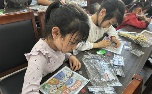 歡聲笑語中,一幅印有護(hù)士、警察、消防員、農(nóng)民等勞動(dòng)者形象的鉆石畫逐漸成型。這場(chǎng)沉浸式的勞動(dòng)美學(xué)體驗(yàn),不僅在孩子們心中播撒下尊重、熱愛勞動(dòng)的種子,更傳遞了勞動(dòng)即幸福的精神內(nèi)核。