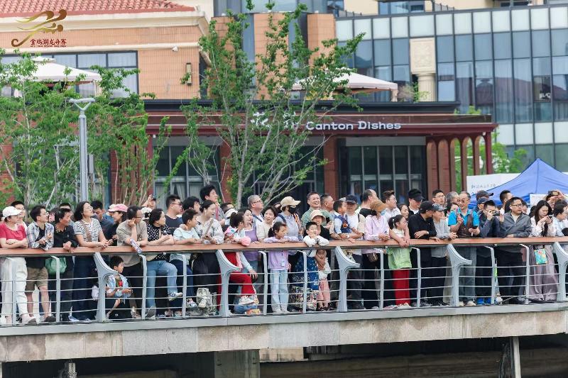 隨著比賽正式開始,金雞湖上百龍爭渡,龍舟隊員們齊心協力、揮槳如飛,向著終點全力沖刺。岸邊的觀眾也被熱烈的氛圍點燃,歡呼聲和加油聲一浪高過一浪。