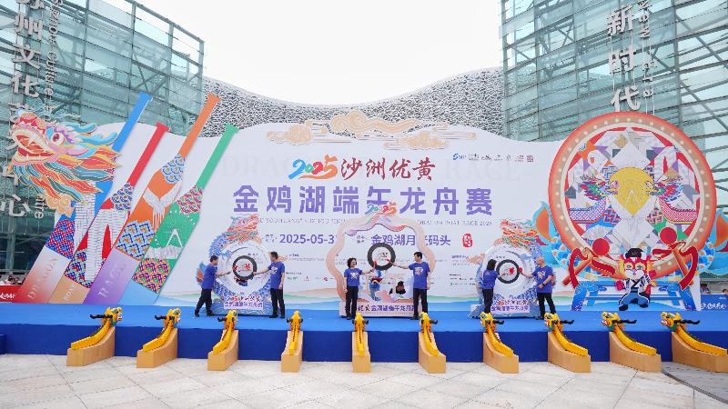 5月31日,2025沙洲優黃第十五屆金雞湖端午龍舟賽在月光碼頭鳴鑼開賽。