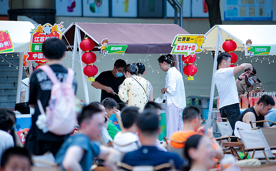 “近期,‘蘇超’聯(lián)賽持續(xù)火爆。我們以‘體育+美食+夜經(jīng)濟(jì)’為核心,融合球迷觀賽、地方美食、文化展示等內(nèi)容,豐富文體旅聯(lián)動(dòng)產(chǎn)品,希望以賽事帶動(dòng)消費(fèi),讓市民在觀賽之余享受美食、互動(dòng)的樂趣,提升看賽體驗(yàn)感。”現(xiàn)場(chǎng)相關(guān)負(fù)責(zé)人表示,未來,園區(qū)還將結(jié)合更多體育IP,推出類似活動(dòng),持續(xù)激活夜間經(jīng)濟(jì)活力。