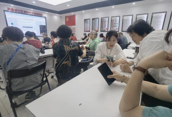 針對居民提出的訴求,鳳凰城社區迅速行動,積極對接社區黨員志愿者沈潔,她曾從事老年有聲語音藝術教學多年,且一直熱心于公益事業。社區聯合沈潔牽頭組建專項小組,并與共建單位華為手機店緊密合作,共同設計了一套老年人數字素養提升課程體系。此外,社區還通過“結對幫扶”機制,發動年輕志愿者為高齡學員提供課后上門指導。如今,在社區和志愿者的共同努力下,鳳凰城社區的老年居民已經能夠熟練使用智能手機,成功跨越了數字鴻溝。