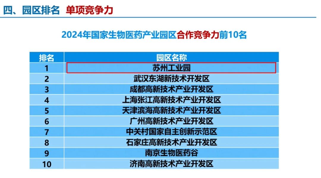 開幕式現場,中國生物醫藥園區競爭力排行榜發布。蘇州工業園區綜合競爭力保持全國第二,人才競爭力、合作競爭力位居第一,穩居全國第一方陣。