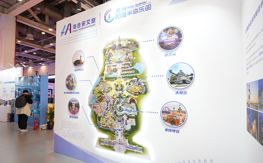 在文旅展區,蘇州陽澄湖片區以整體聯動之勢,展現出從傳統觀光向“沉浸式湖濱文娛目的地”的升級。作為區域文旅體驗的重要組成,蘇州陽澄半島樂園以“自然生態、魔法親子、國風文化、夜游經濟、節慶活動”五大核心體驗為特色,觀眾可在現場通過AI拍照裝置與熱門IP“奶龍”互動,沉浸式體驗“當狀元”的國風情境,感受文旅場景如何借助科技與創意實現“可玩、可感、可傳播”。