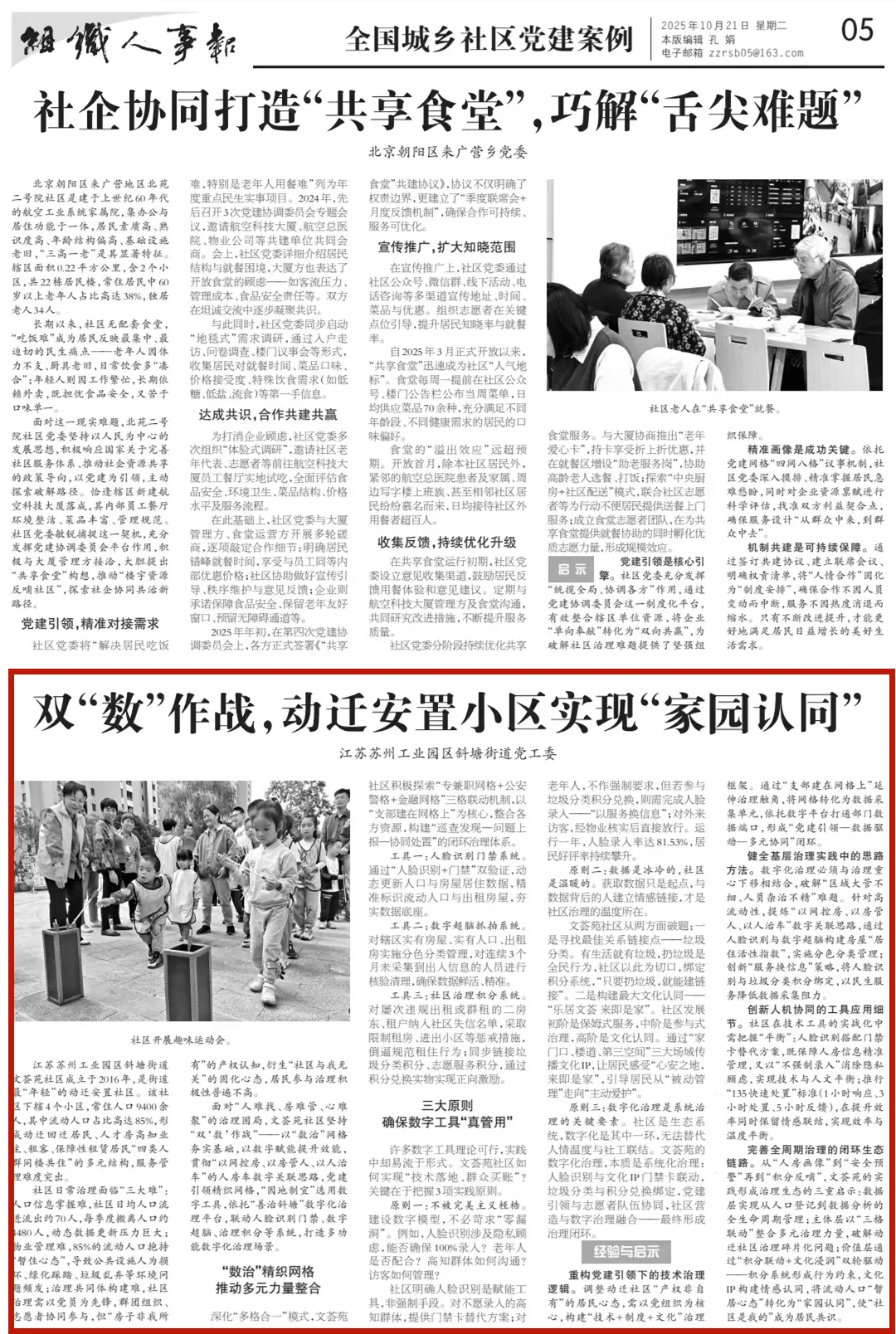 “智”治思維破解動遷安置小區治理難點堵點推動數字技術與基層治理深度融合……近日《組織人事報》刊發《雙“數”作戰動遷安置小區實現“家園認同”》一文深度報道蘇州工業園區斜塘街道文薈苑社區破解基層治理的創新路徑及實踐成效