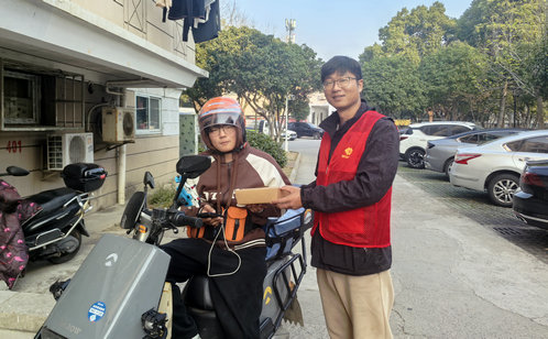 社區(qū)網(wǎng)格員與“紅色管家”志愿者一起將這些滿載著關(guān)懷與敬意的甜蜜禮物送到了附近的快遞驛站、外賣配送點(diǎn),并用樸實(shí)的話語(yǔ)表達(dá)對(duì)他們的感謝與敬意:“平時(shí)都是你們?yōu)槲覀儽疾ㄋ图裉煲矅L嘗我們親手做的小點(diǎn)心,辛苦了!”一句句溫暖的話語(yǔ),一份份甜蜜的禮物,讓這些終日穿梭在城市街巷的“勤勞小蜜蜂”們倍感溫暖與感動(dòng)。