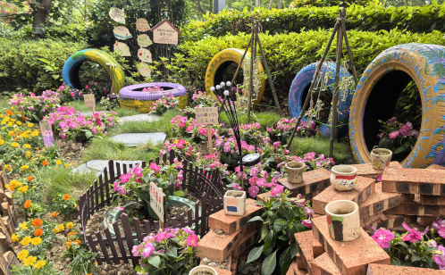 有了方案,社區迅速集結起一支由物業、黨員志愿者、青少年家庭與轄區養花達人組成的志愿者隊伍。社區負責提供基礎建材、花苗等核心物資;居民主動捐贈閑置花盆、綠植,讓“舊物”煥發“新綠”;共建單位積極贊助園藝工具,為花圃建設添磚加瓦。活動現場,親子家庭分工協作,搭建休憩區域、整理種植土壤、辨識花種特性、制作植物標識木牌,在共同勞作中播下鄰里互助的種子。