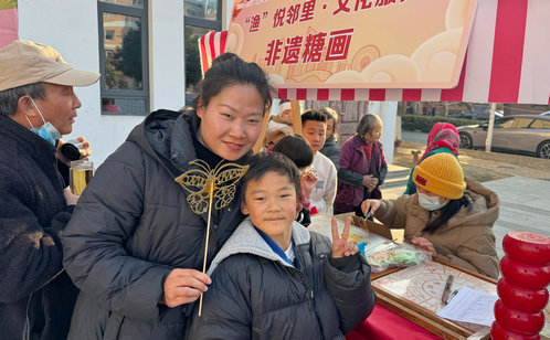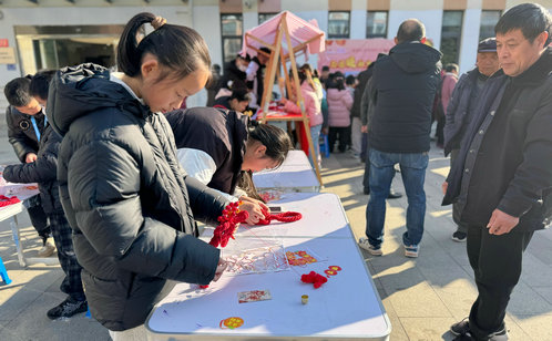 “便民惠民服務區”聚焦居民的實際需求,提供健康、生活、文化等多種服務。在健康服務區,中醫推拿、血糖血壓檢測等項目備受歡迎,專業醫護人員耐心解答居民的健康疑問,傳遞冬日關懷。在生活服務區,居民們有序得在磨刀、理發服務攤位前排起長隊。而一旁的文化服務區則深受小朋友喜愛,在糖畫制作和中國結DIY體驗中度過了愉快的周末。