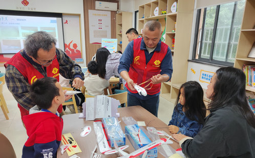 社區首先為“夢之翼”社團解決組織保障問題。新蘇社區將婦女兒童之家活動室作為固定場地,每月根據志愿者老師和學生的業余時間協調安排活動時段。社工提前發布招募通知,并根據報名情況準備相應的模型材料。活動中,社工全程跟課記錄;活動結束后,社區收集反饋、留存活動材料。三年來,正是這些看似瑣碎的后臺工作,支撐社團活動每月如期開展。