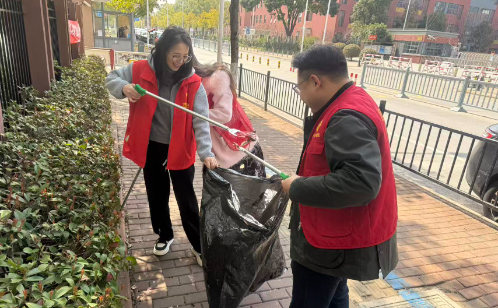 大家以小組為單位,沿著社區主次干道、背街小巷逐一推進清掃,重點針對綠化帶內藏匿的塑料垃圾、白色污染物,健身休閑區域周邊的枯枝敗葉、散落雜物,以及路面零星垃圾進行全面撿拾、集中清運。一抹抹鮮亮的“紅馬甲”穿梭在街頭巷尾,成為春日里一道暖心的風景線。