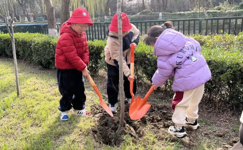 從居民到孩童,綠色的接力棒正在代代相傳。香堤社區新時代文明實踐站聯合香堤瀾灣幼兒園、優尼科物業共同開展植樹活動。活動當天,大家齊聚在小區內的“共享海棠花園”。小朋友們在“紅管”志愿者和老師的帶領下化身“小小植樹員”,揮鍬鏟土、扶苗填坑、提桶澆水……不久后,十余棵樹苗在春風中挺立,為社區增添了一抹盎然生機,老師借此引導小朋友們樹立正直向上的品格。孩子們把自己親手制作的寄語卡片掛在小樹苗上,用純真的行動守護綠色希望,在實踐中感受勞動的快樂與責任的意義。