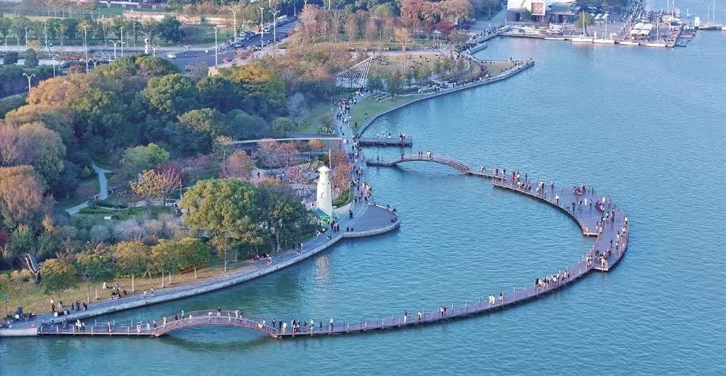 昨天,園區(qū)金雞湖湖濱步道上,推著嬰兒車的家長、牽著手的情侶、不知疲倦的孩子……匯成了一幅周末休閑圖景。